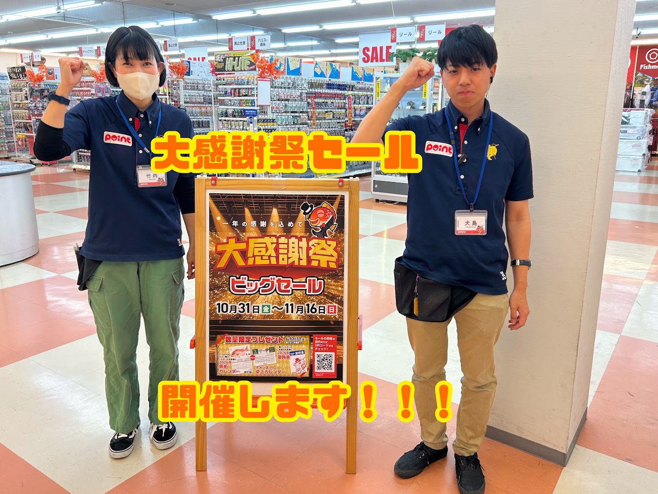こんにちは! ポイント姫路網干店です 今回はセールのご案内です 10月31日(金)〜11月16日(日)まで 大感謝祭ビッグセールを開催致します ...