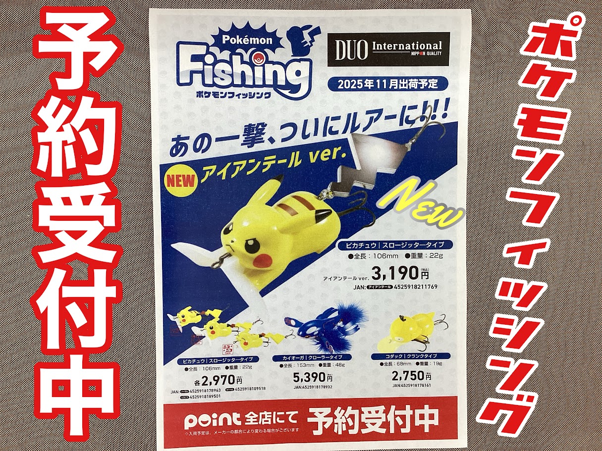 ポイント安芸坂店です 大人気のDUOポケモンルアー ピカチュウの新たなフォルムが加わり 本日より予約受付開始!!...