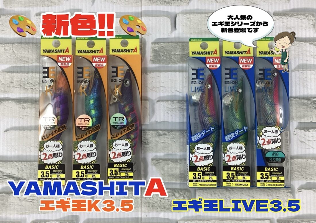 皆様こんにちは 千葉ニュータウン店です 本日は 大人気商品から 新色追加 のお知らせです ヤマシタ エギ王K3.5 エギ王LIVE3.5 スレイカ攻略に...