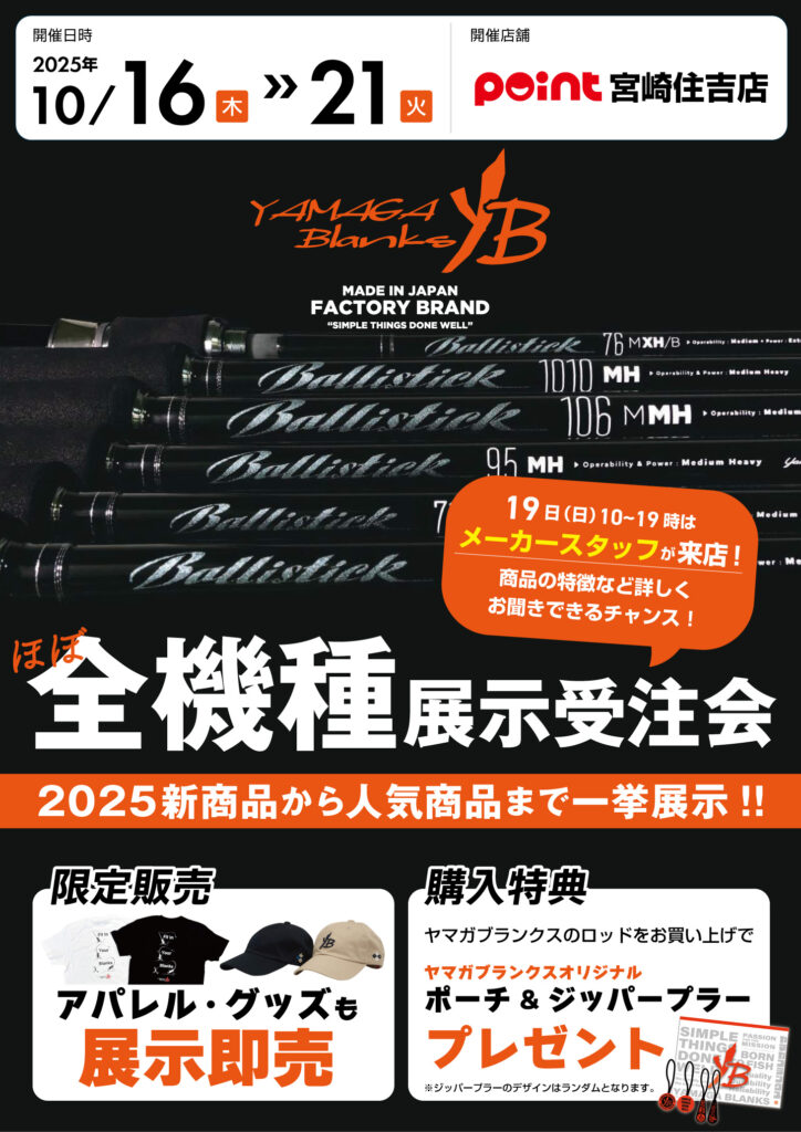 みなさんこんにちは!! ポイント宮崎住吉店です!!! 『お知らせ』 当店にて 【ヤマガブランクス展示受注会】を 開催中で御座います!!! ...