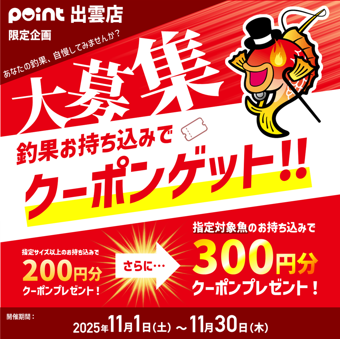 【出雲店限定】釣果🐟お持ち込みで🎫クーポンGET!