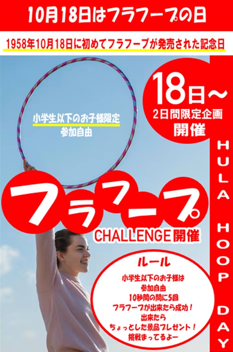 【週末イベントのお知らせ】10月18日はフラフープの日♪