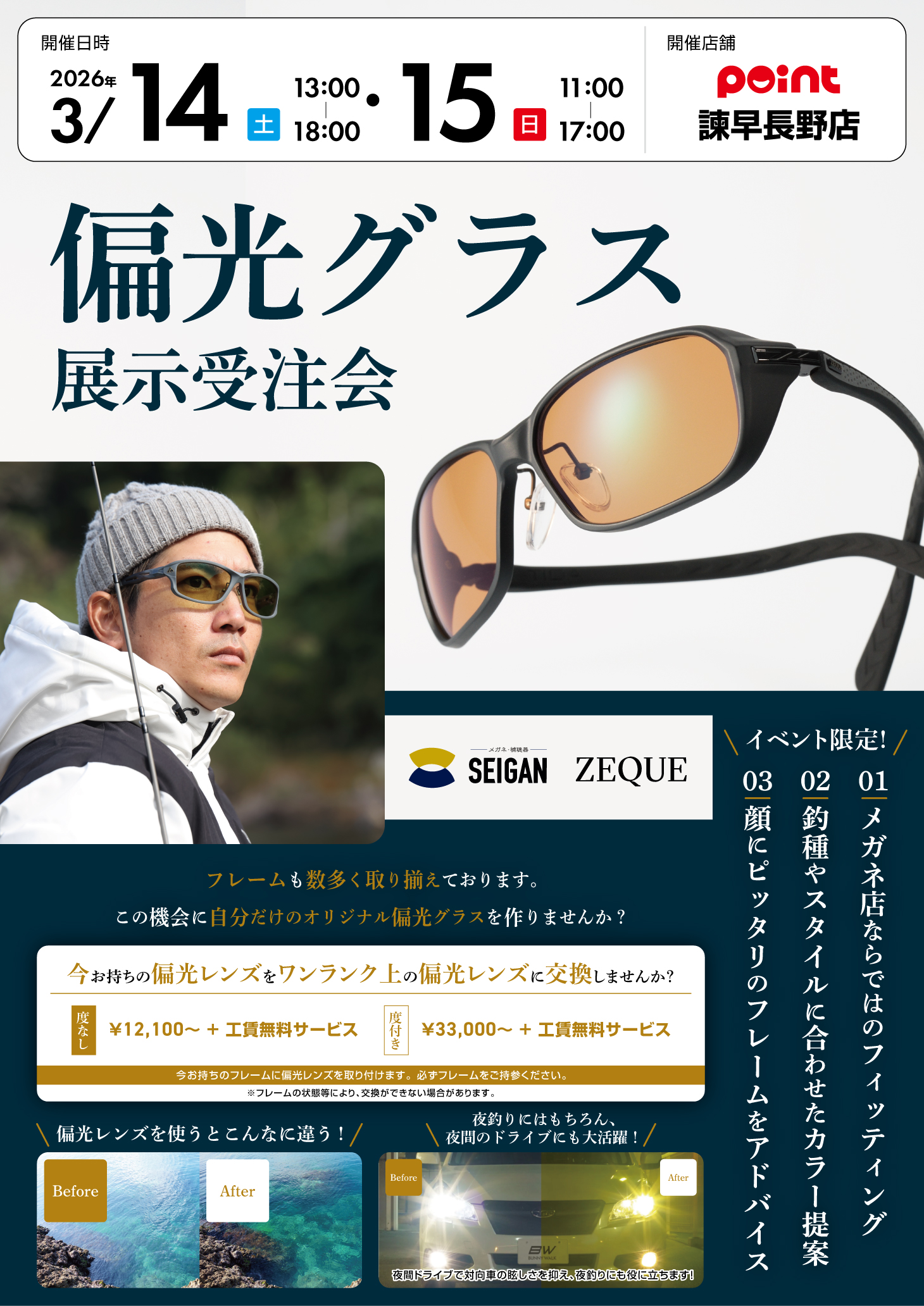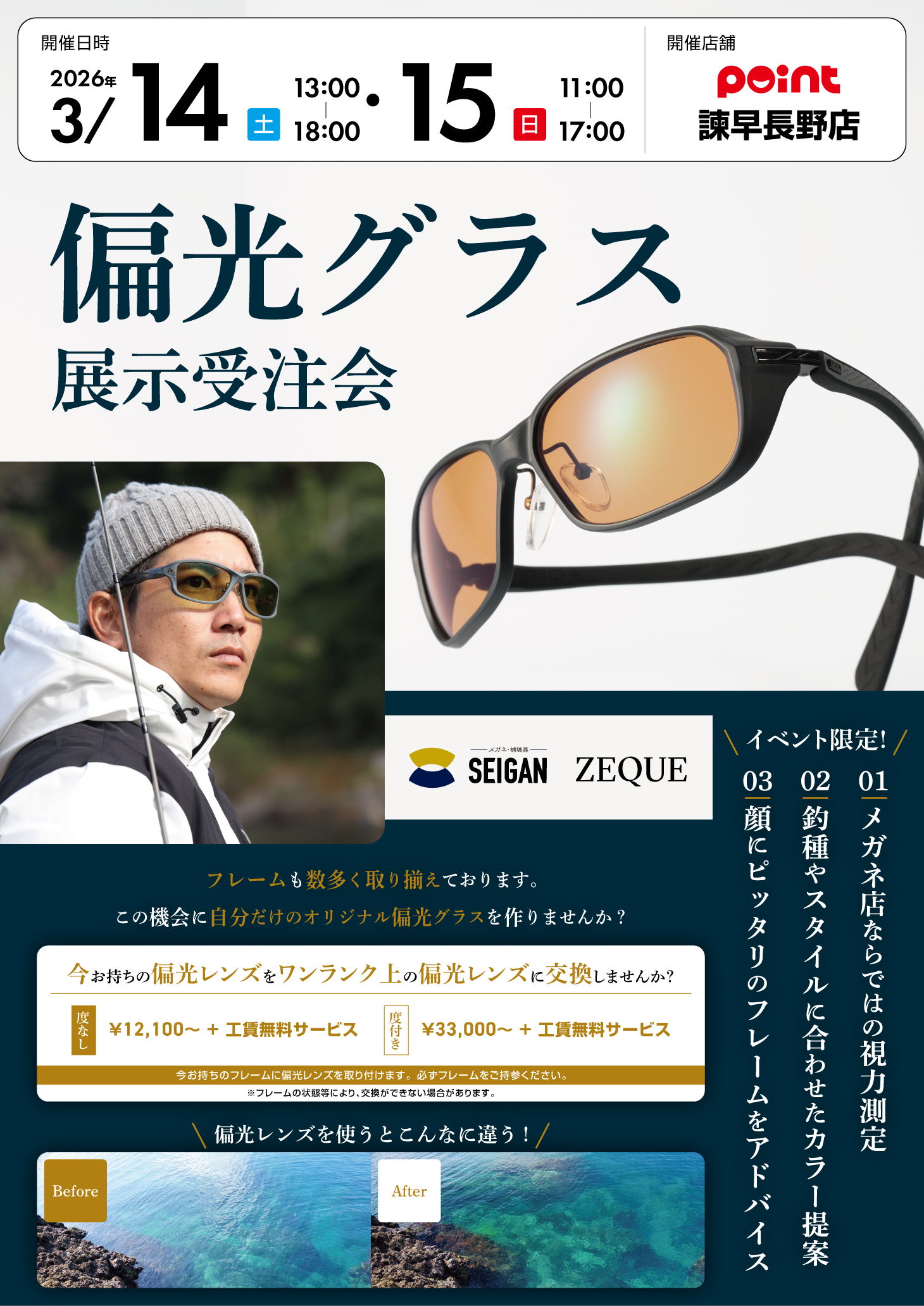 諫早長野店 いわなが2026/03/10いよいよ春本番! 偏光グラス受注会開催です! 2日間だけ、 特設ブースで受注を受け付けます 14日【土】13:0018:00 15日【日】11:0017:00 ...