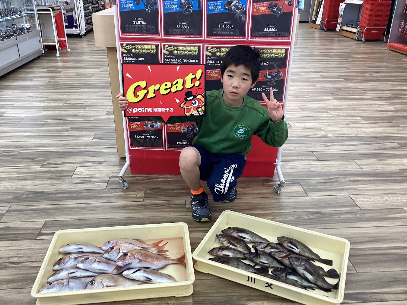 時津店 栗山2026/02/16皆さんさんこんにちは! 筋トレと魚との綱引きが大好きな男! ᕙ(‸‶)ᕗ どうも栗山です!() ここ最近時化ばっかりですね 休みの度に雪、爆風、雪、爆風...