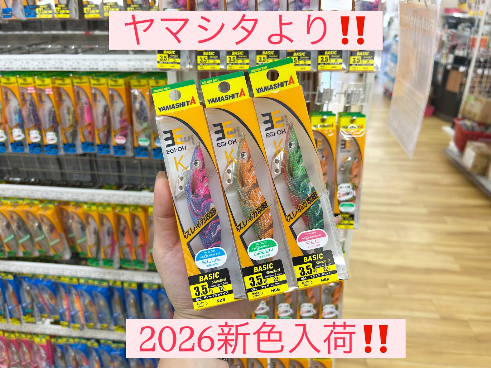 西広島バイパス店 おみき2026/03/05皆様こんばんは ・ ヤマシタより、 「エギ王K3.5号ベーシック」 新色入荷致しました! ・ 是非、ご利用下さいませ(*ω*) ※こちらの商品は個数制限がございます。 ご了承下さいませ。