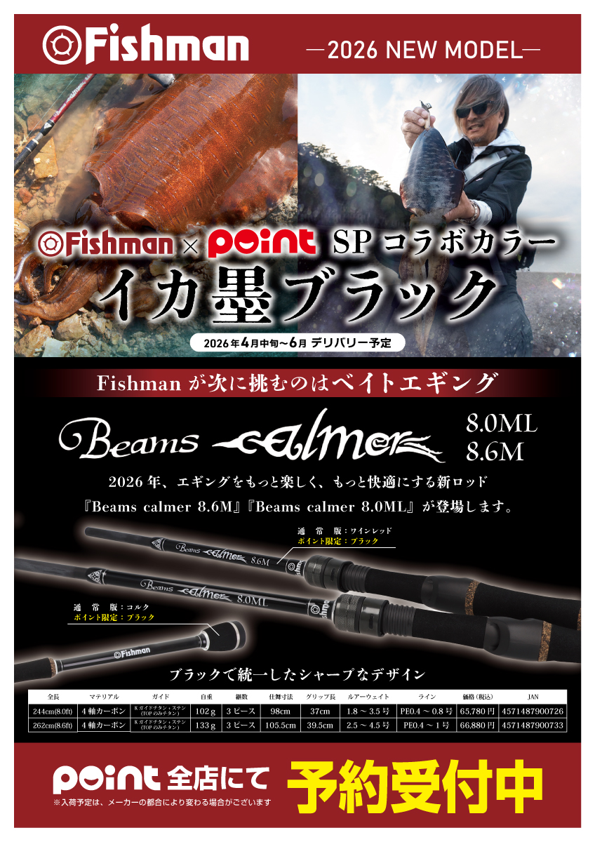 徳島小松島店 寺尾2026/03/25フィッシュマンから初のエギングRODが登場 『FM ビームス カルマ―』 ベイトエギング専用として開発された...