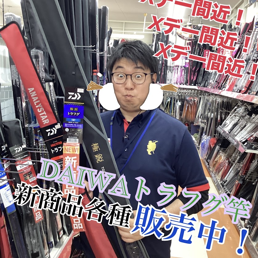 横浜港南台店 小山2026/03/30皆様こんにちは 釣具のポイント横浜港南台店です トラフグファンの皆様、朗報です! いよいよXデー間近! 当店もこれに向けて、ダイワの...