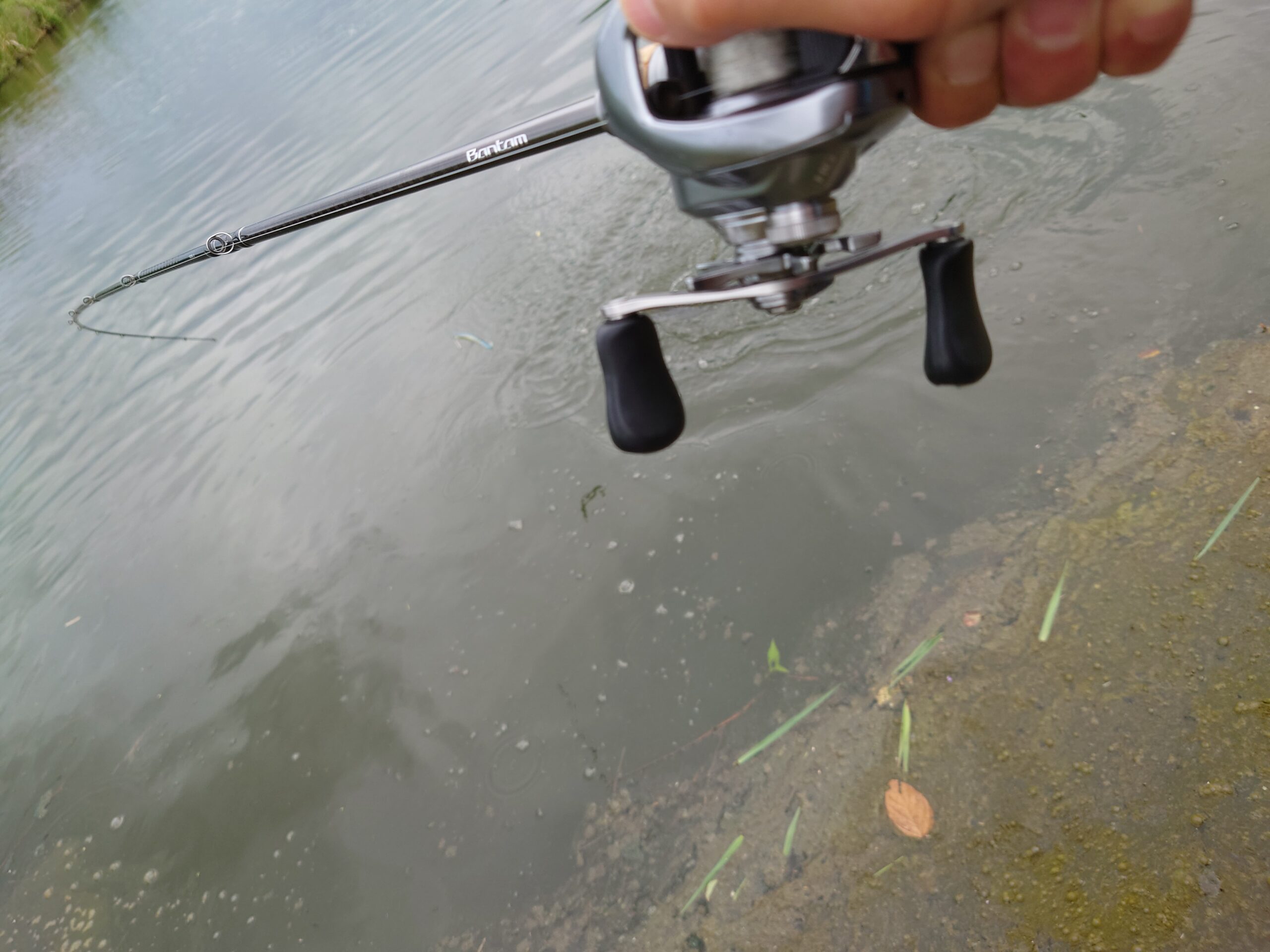 護岸際からクリークのブレイクアタリへ落し込んだ際に