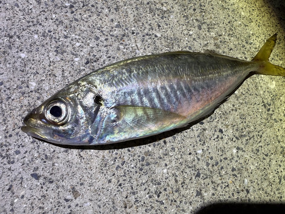 釣場に着くと常夜灯の下にアジを発見😯