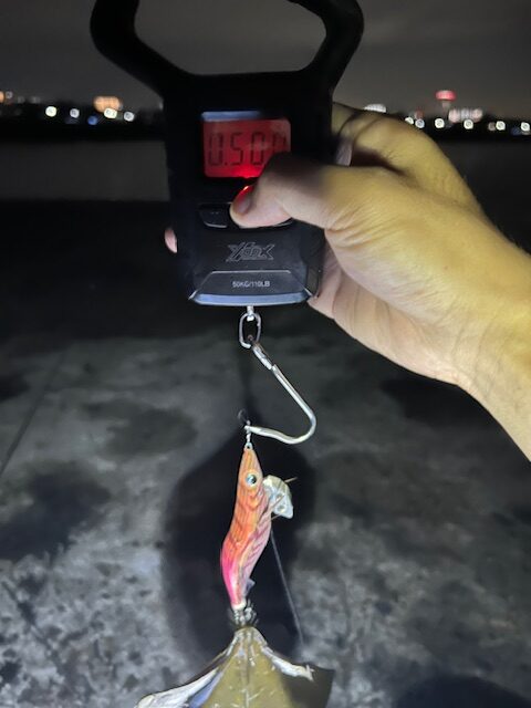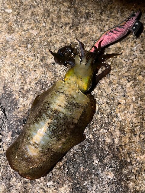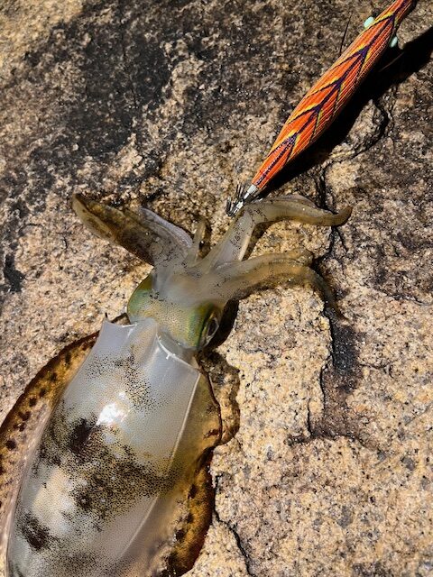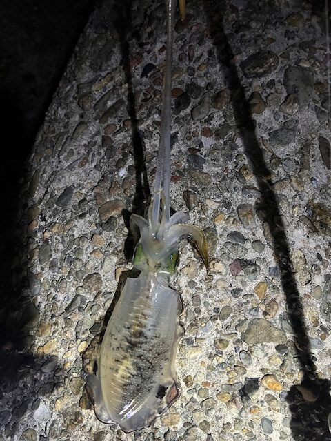 表層から底までを丁寧に探ることで、胴長15センチ前後のアオリイカ