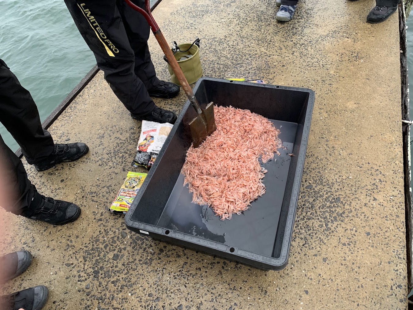 オキアミを潰すとべちゃべちゃと粘度が出てくるのでその性質を利用し、
