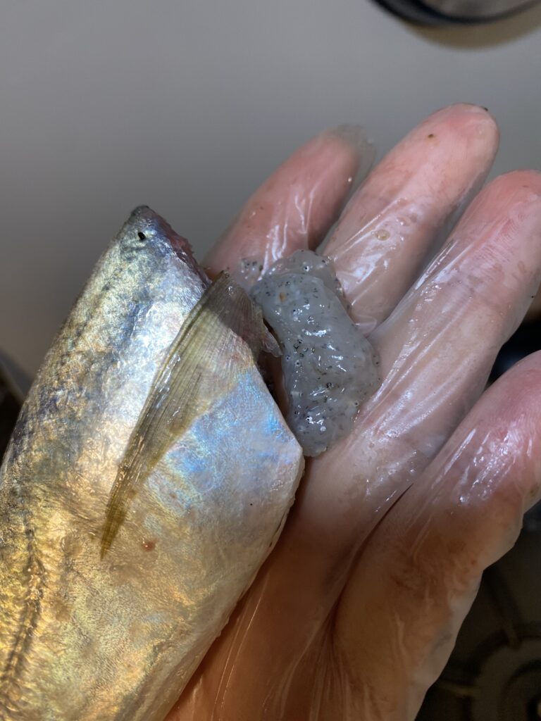 前回のアジングで釣れたアジさん達を自宅で捌いていると・・