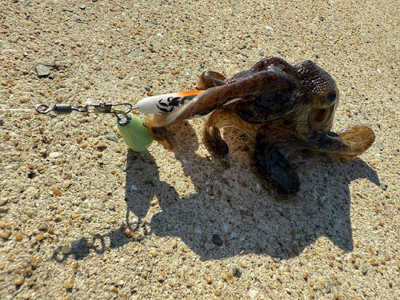 まぁまぁ型の良い元気なイイダコ釣れてます!😀