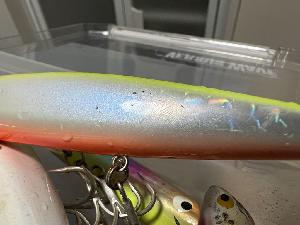 ルアーに歯形だけがどんどんと刻み込まれます。