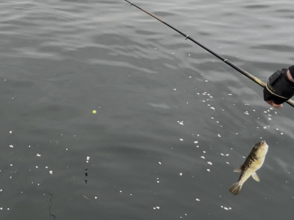 ウキは0号でエサは練り餌を使用し