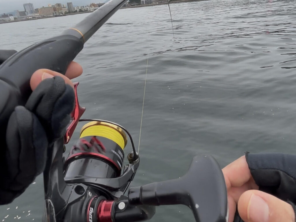 右に泳げば左に竿を動かし