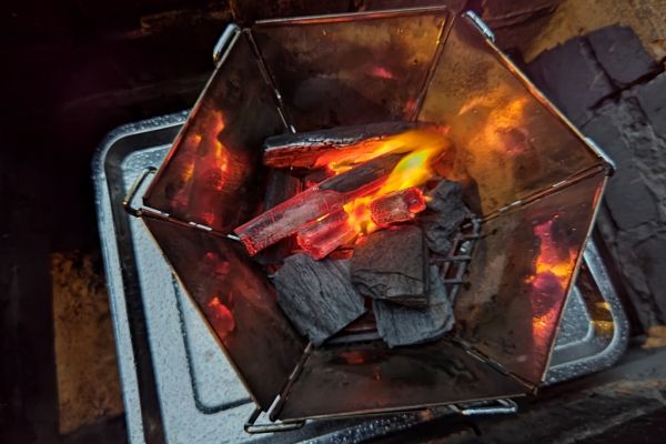 ちょうど火をおこし始めた時には、雨が降ってきました。