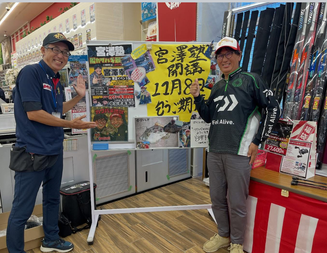 11月8日(土)、ポイント徳島小松島店にて、ダイワフィールドテスター 宮澤幸則氏をお招きした店頭イベント「カワハギ宮澤塾」が大盛況のうちに終了いたしました!