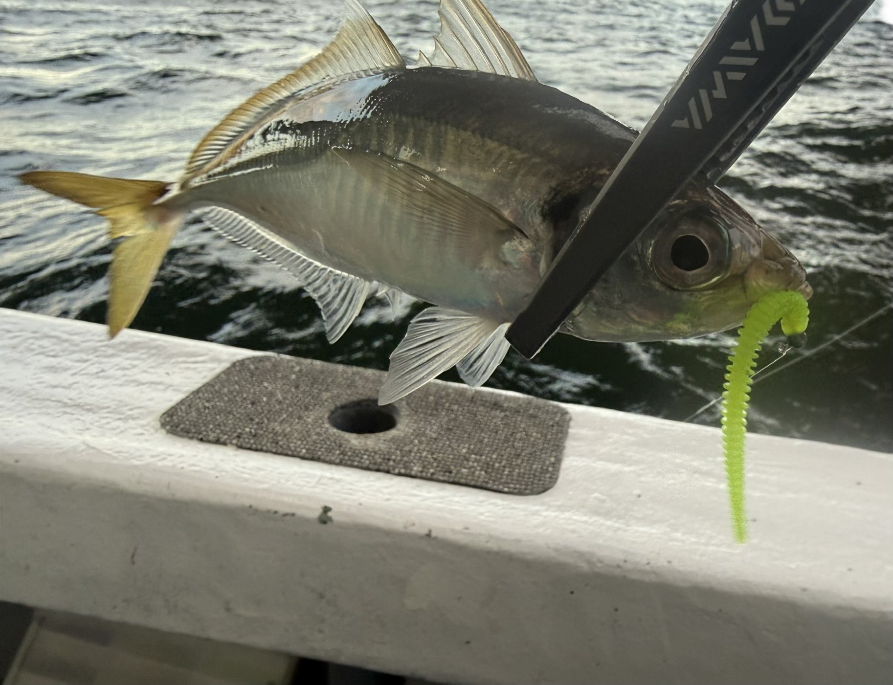 私はローテーションさせるワームをあらかじめ船べりの下にセットしてます
