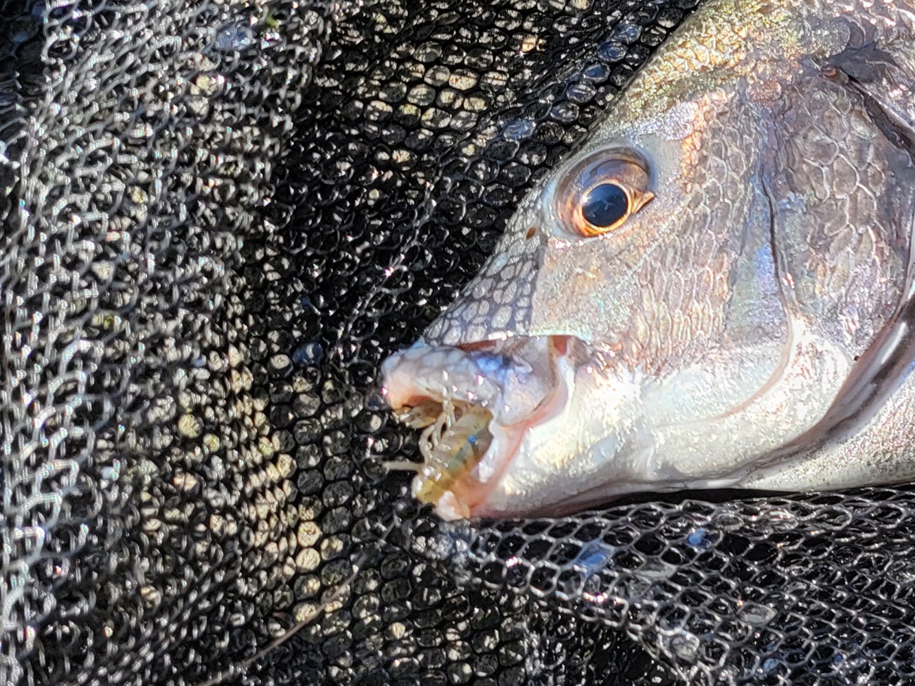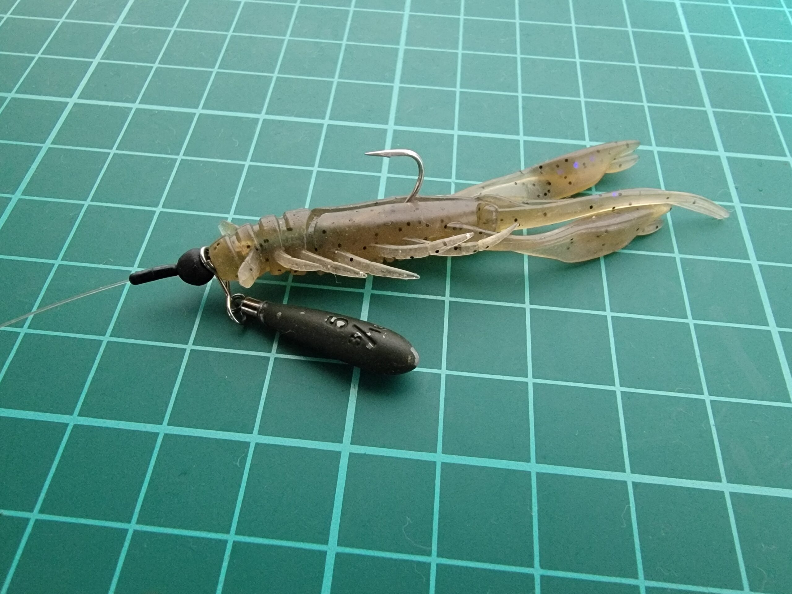 チヌとの戦いでウェーバーシュリンプがちぎれたので、ここからはダイワのアーバンシュリンプに変更。