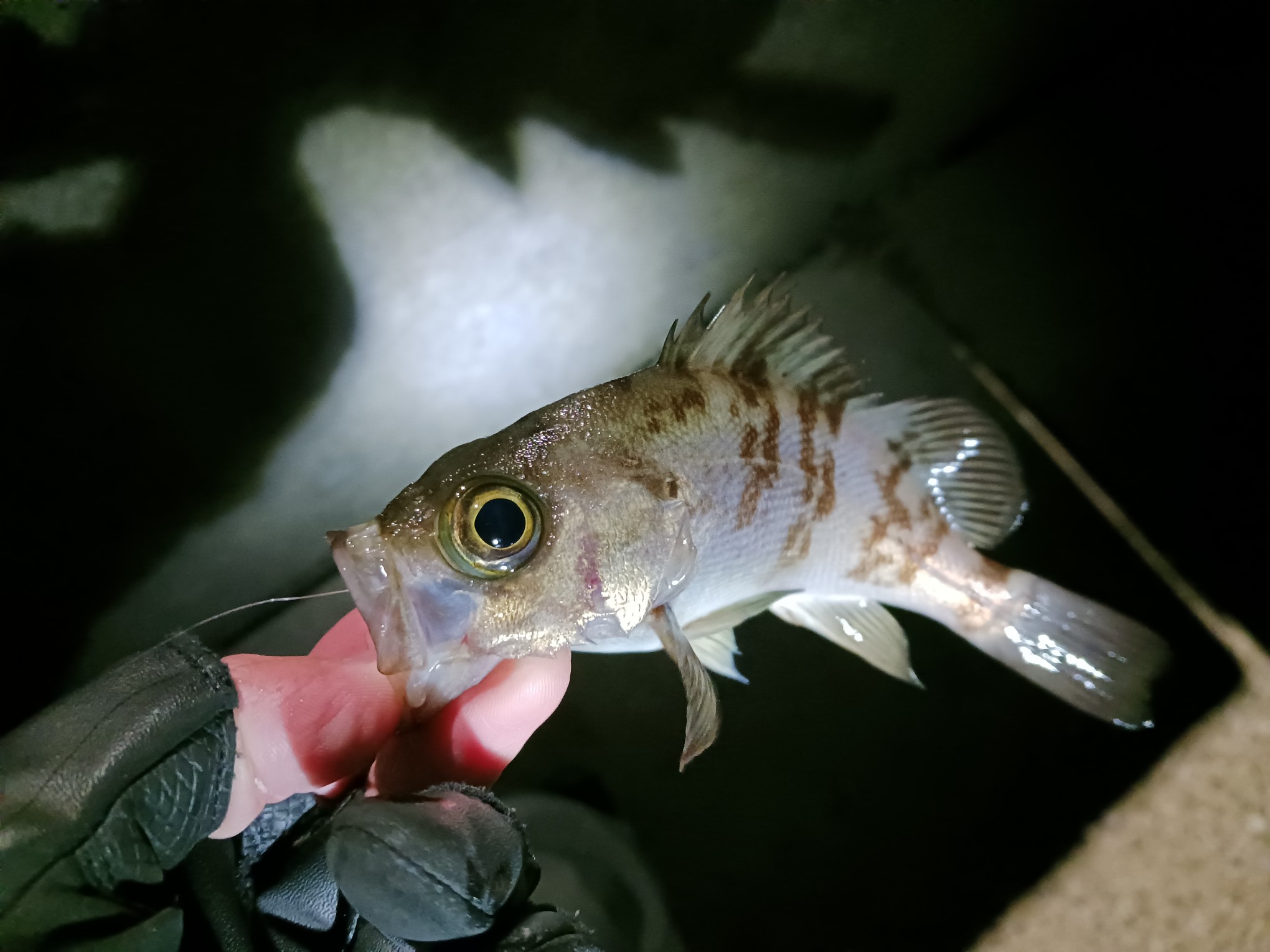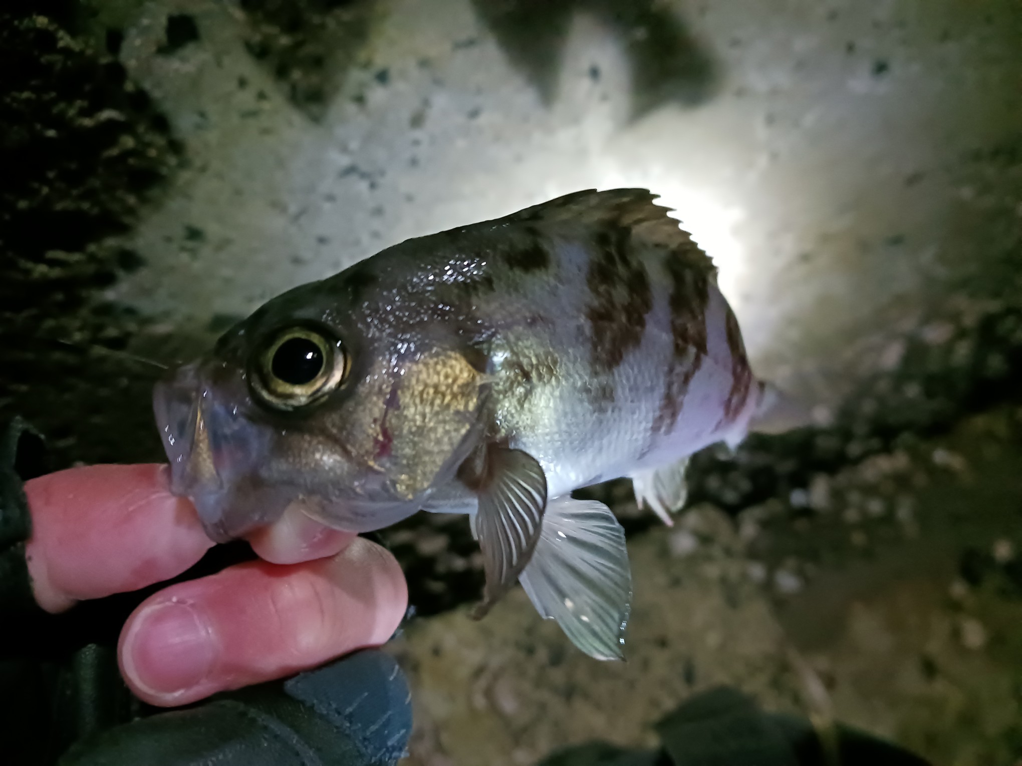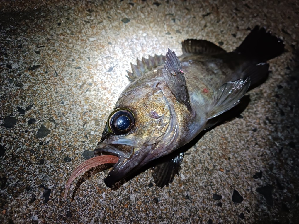 1か所目では小型メバルは当たるもサイズアップの気配無し…