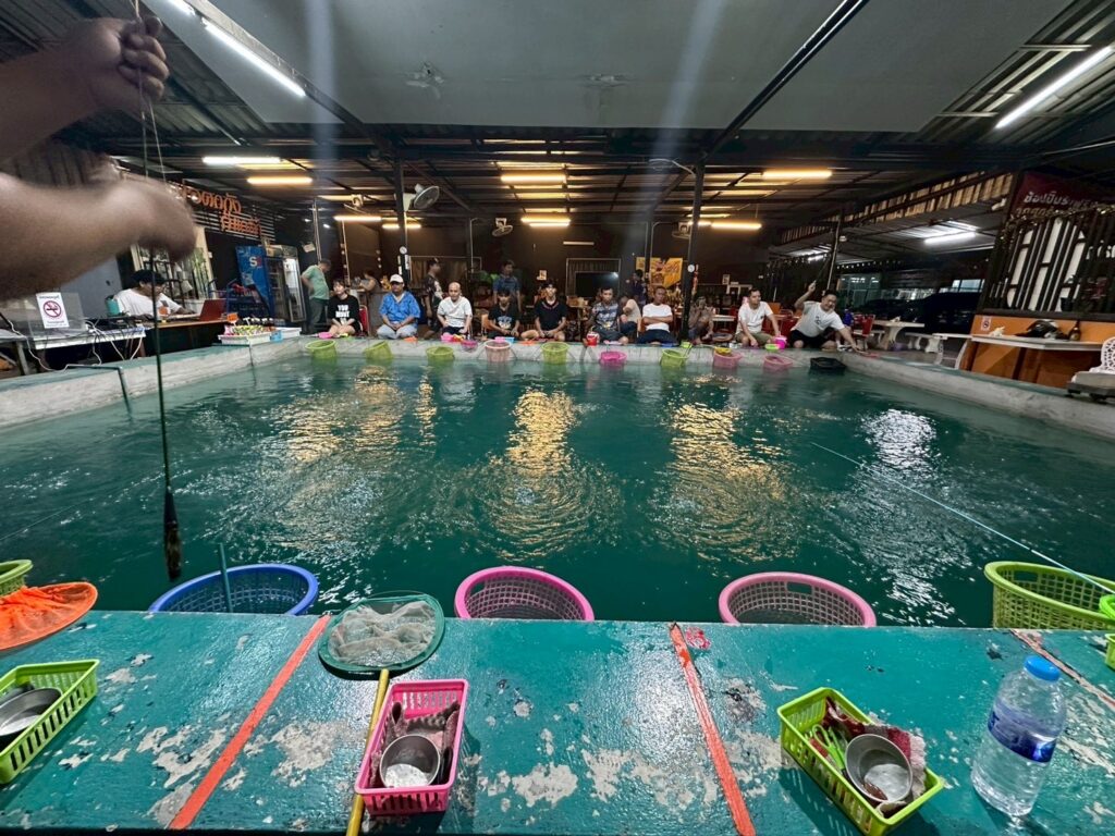 タイではかなりポピュラーな遊びらしく、首都バンコクには沢山のエビ釣り堀がります!