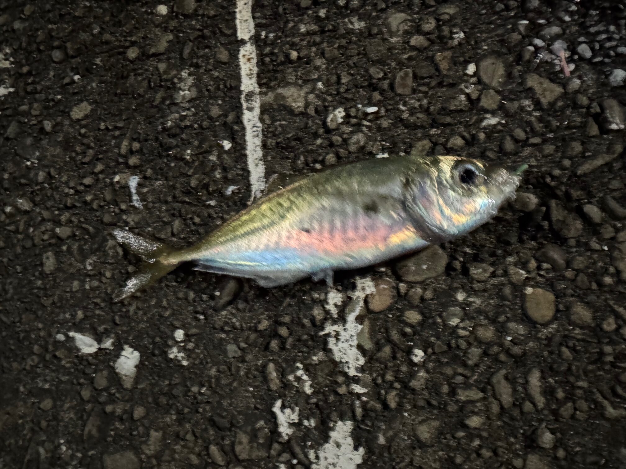 写真ブレブレですがナイスサイズのアジです