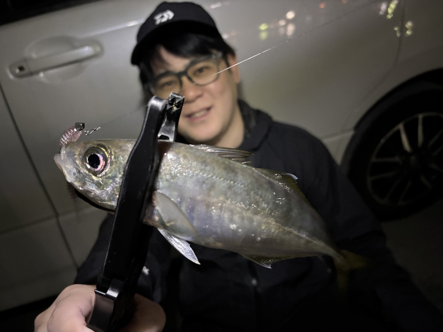 夜の堤防にて常夜灯周りで大型のアジを狙えます😎