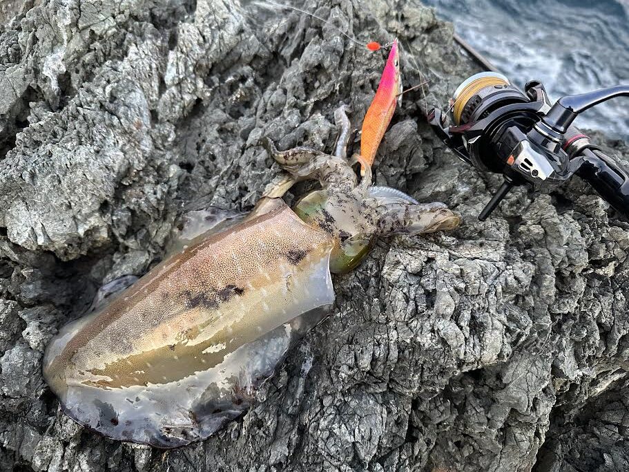 実は初沖磯エギング!