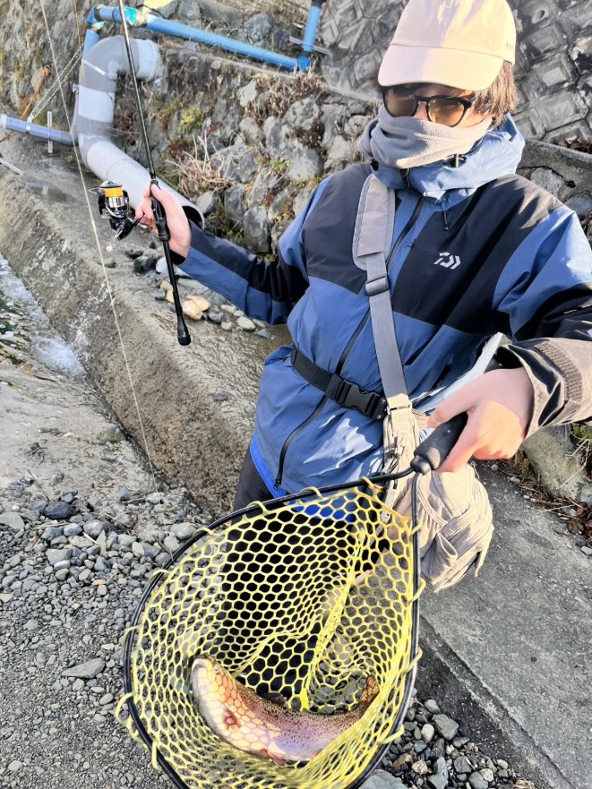 助さんの必死のパッチで管釣り(芥川)