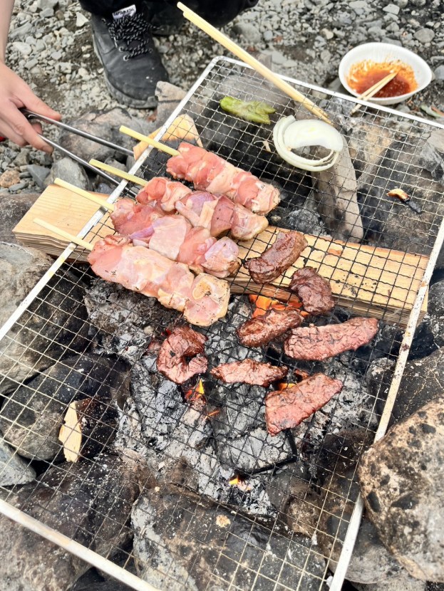 持ち込んだ食材や釣った魚を焼いて頂きました