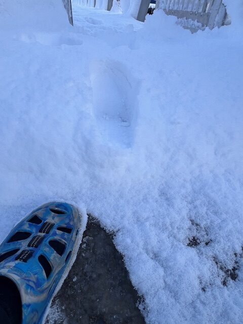 前日からの大雪で桟橋にはたんまり雪が…😨