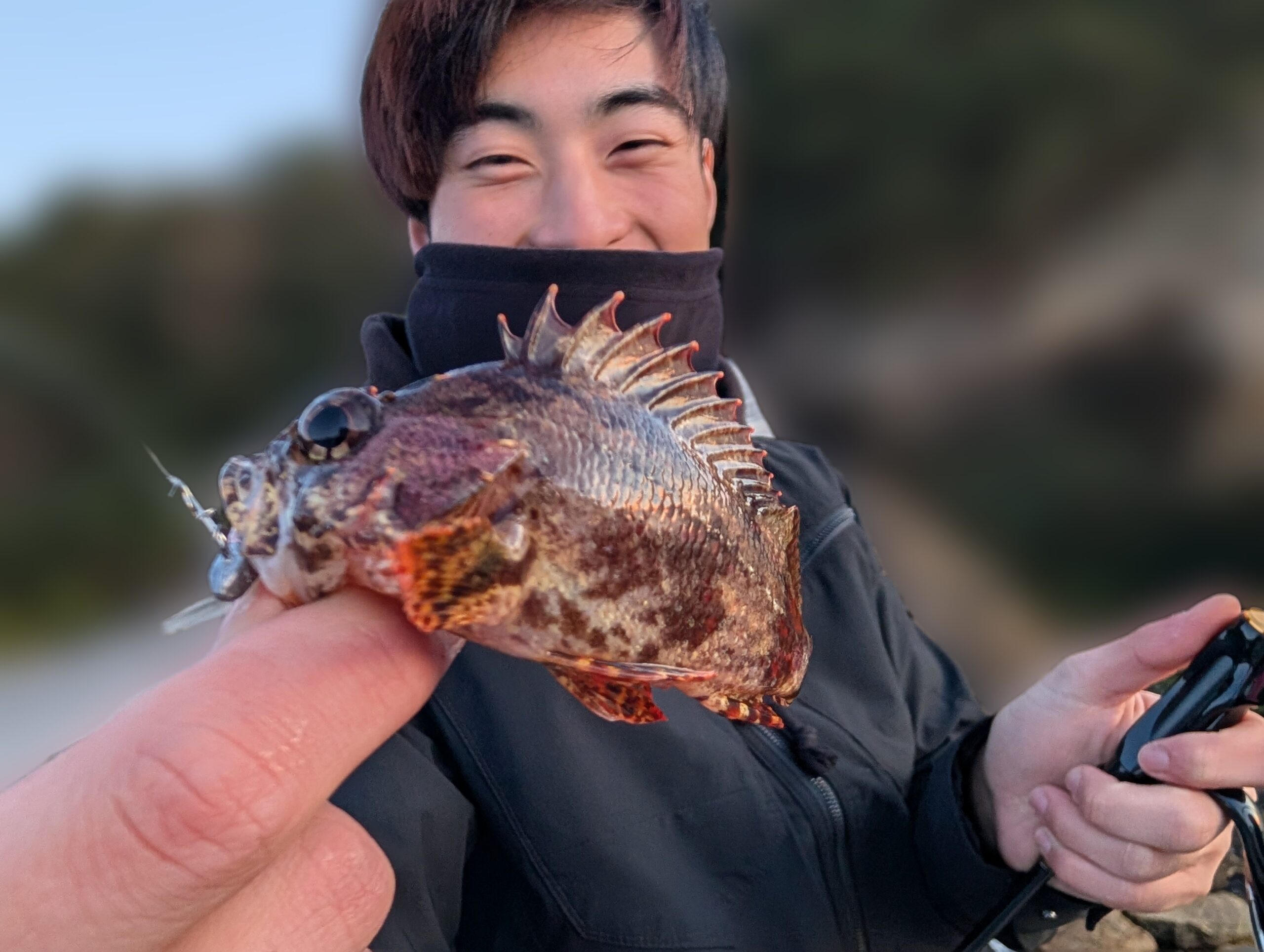 まずは2人ともカサゴGET!