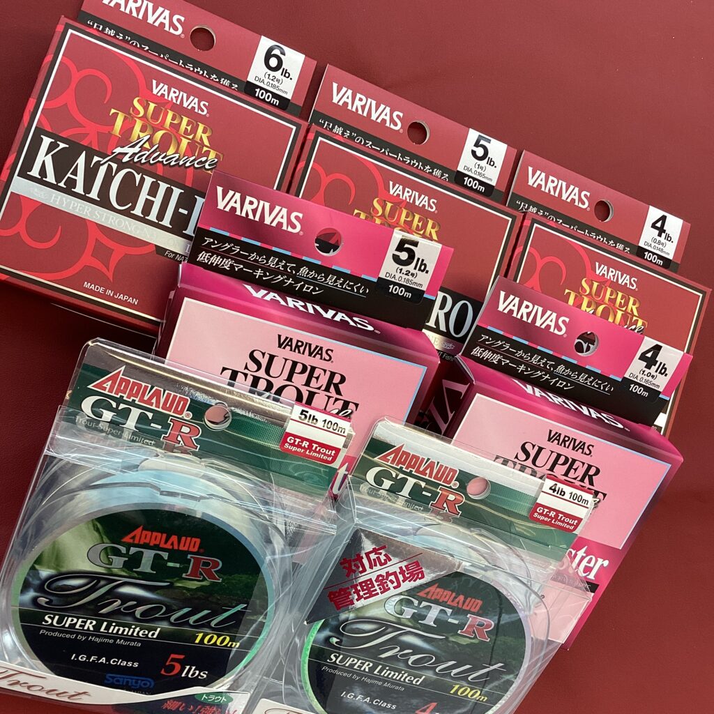 なのでナイロンラインがベスト!というわけでニジマスやブラウンが釣れる地域や中流域で尺オーバーが出るよという場所は6LB~5LB