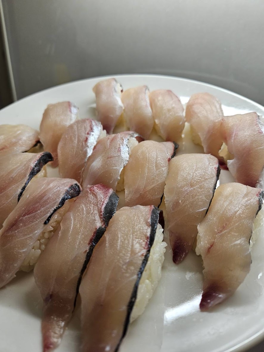 店長は釣れた味を刺身にしたり寿司にしたりしてテラアジを堪能しています😝