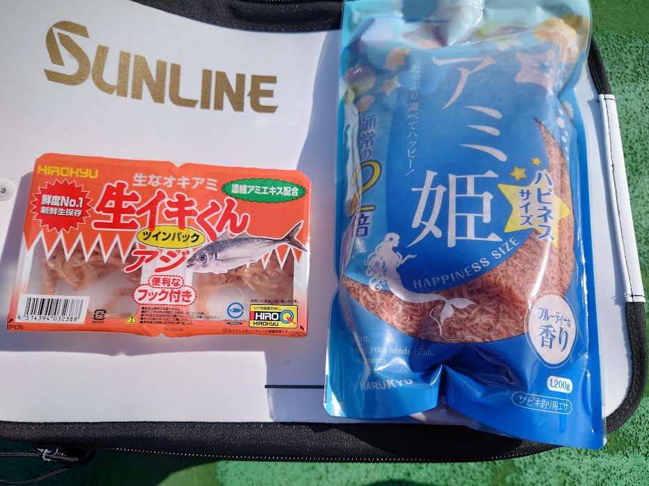 サヨリ用のツケ餌てはなく、鈎に付けやすいようにアジ用を選択😊