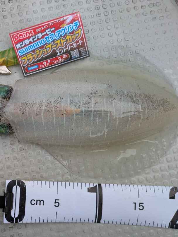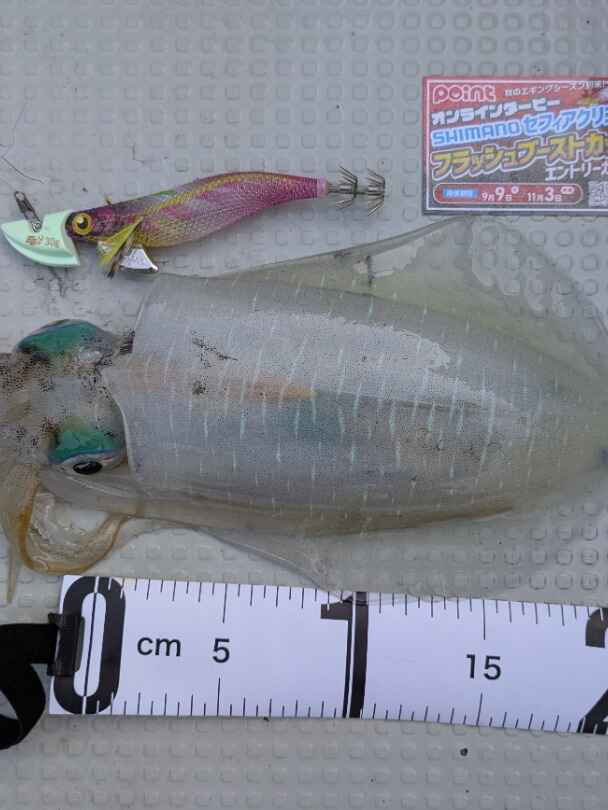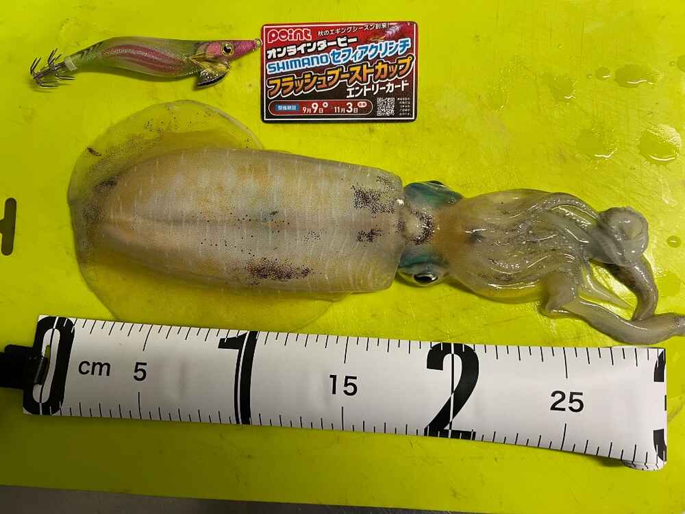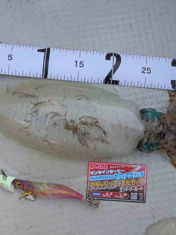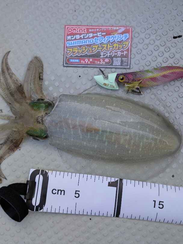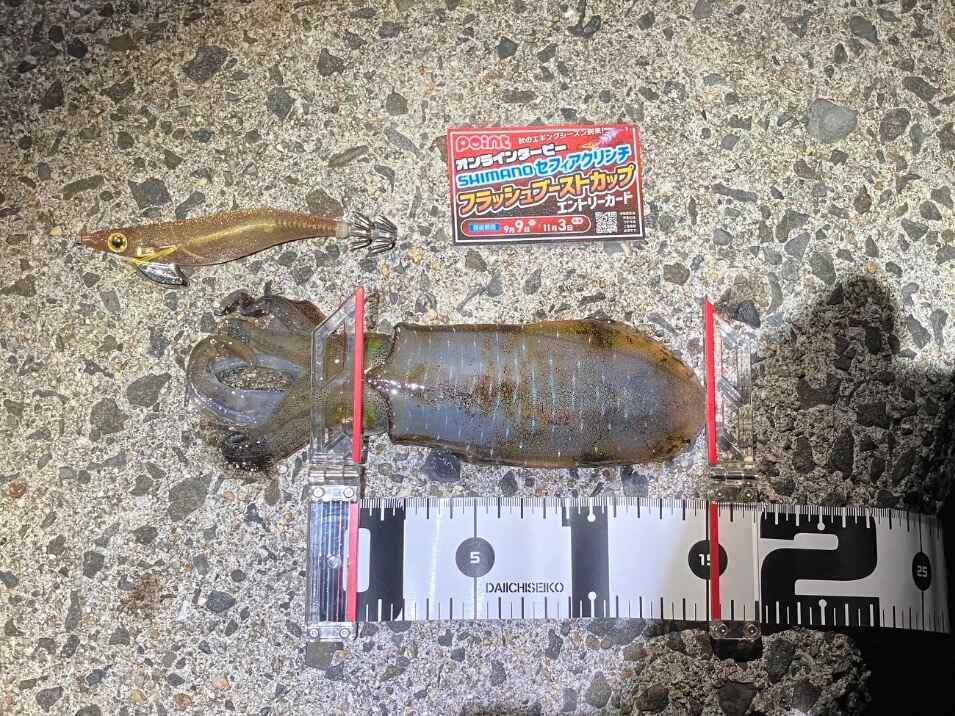 ①エントリーカード、②使用したエギ(セフィアクリンチフラッシュブースト)、③メジャー も一緒に撮影すること