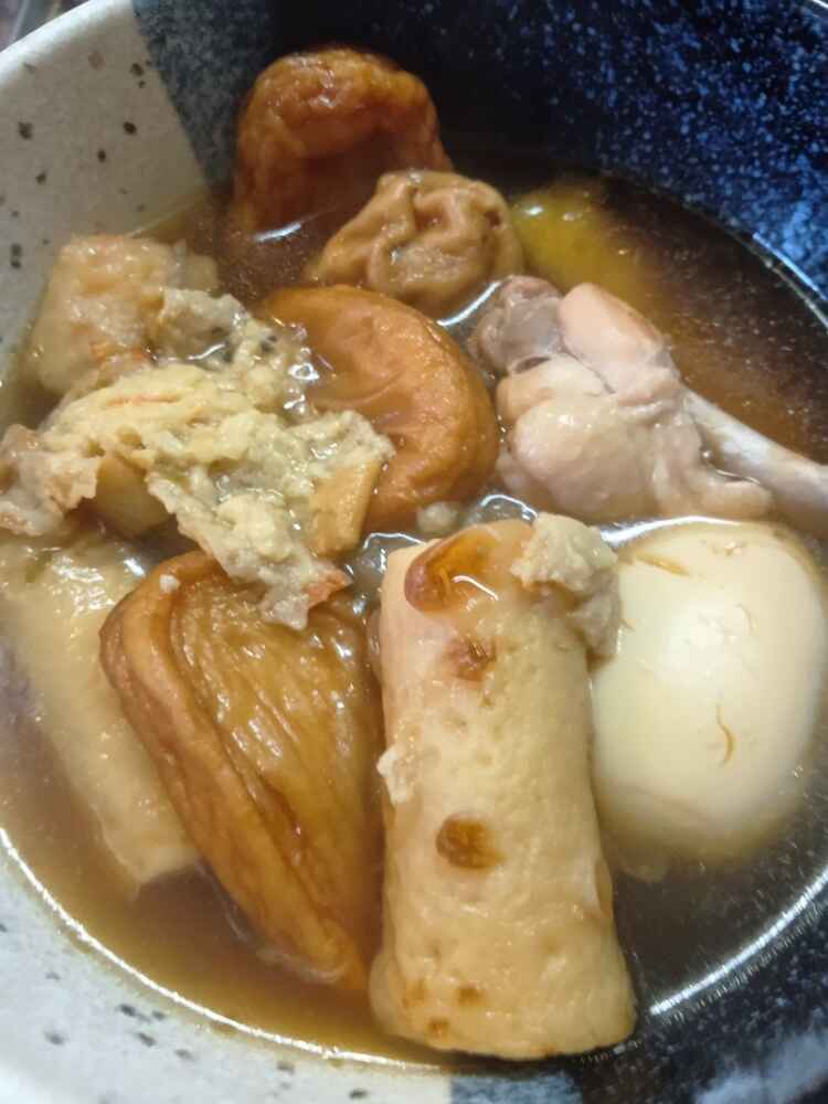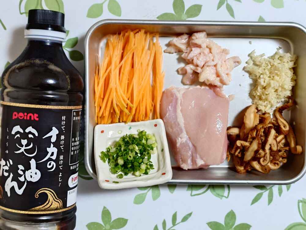 (1)料理(完成品)、(2)笑油だれ