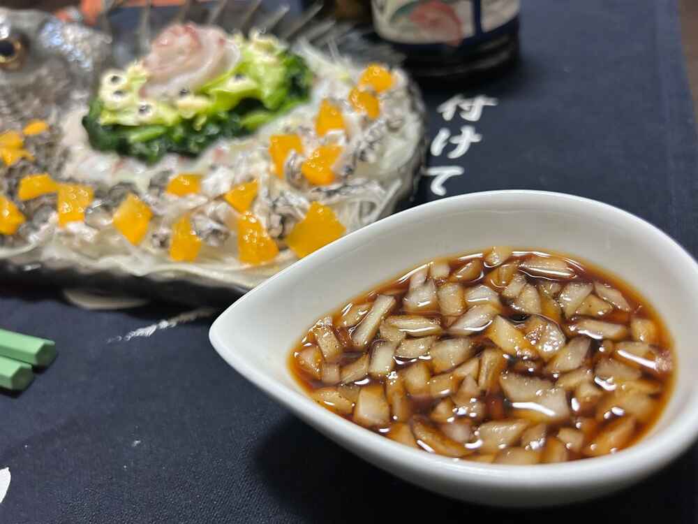 04. 料理(完成品)、笑油だれを一緒に撮影。