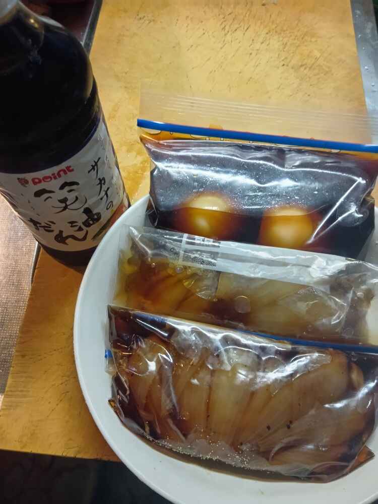 (1)料理(完成品)、(2)笑油だれ