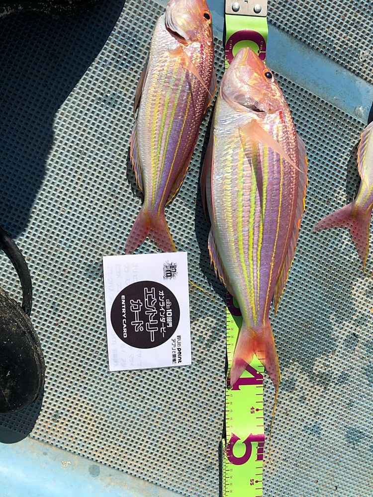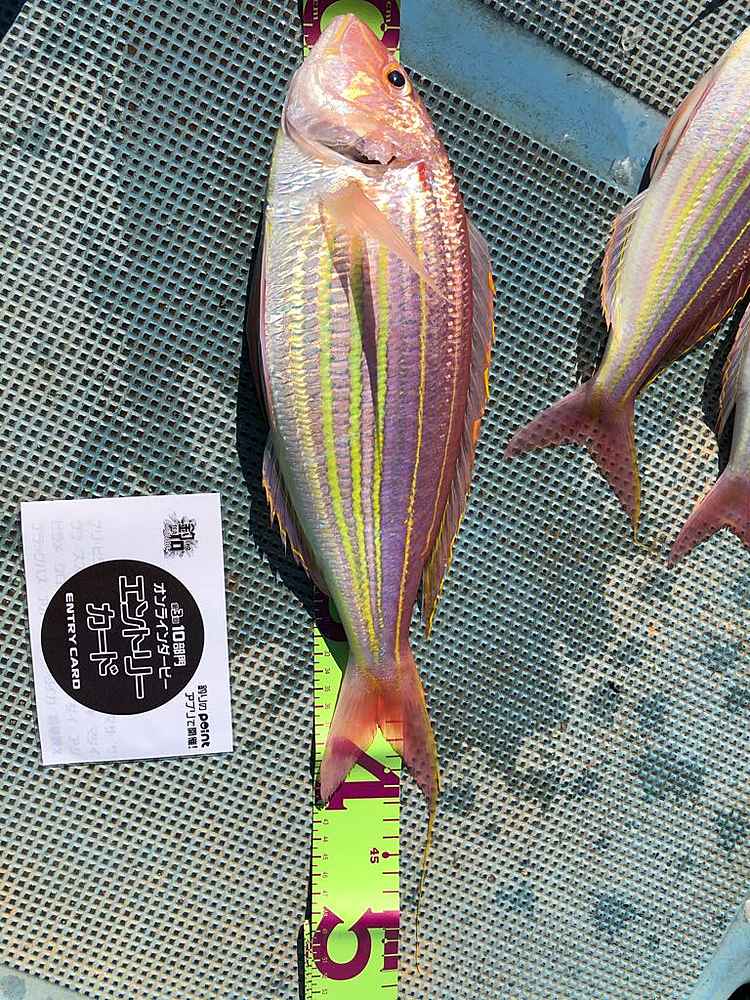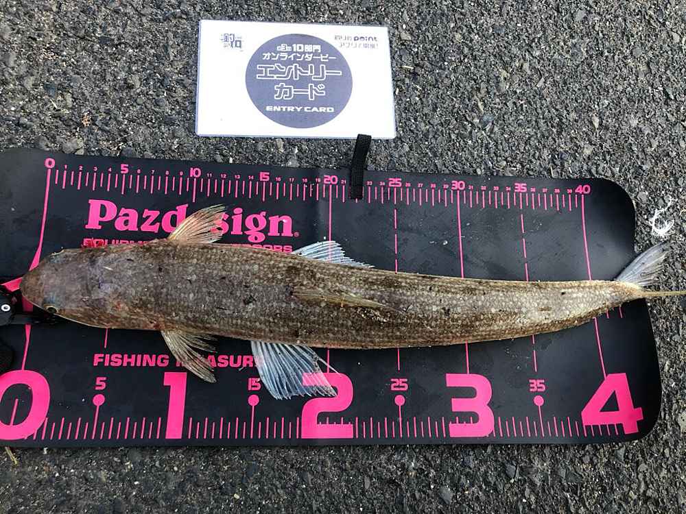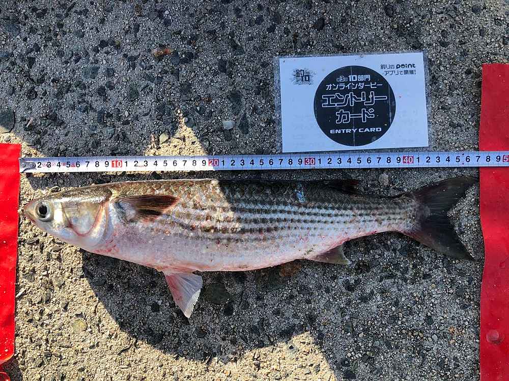 ②期間中での釣果を証明するため、釣魚単体とエントリーカードを合わせて撮影した写真