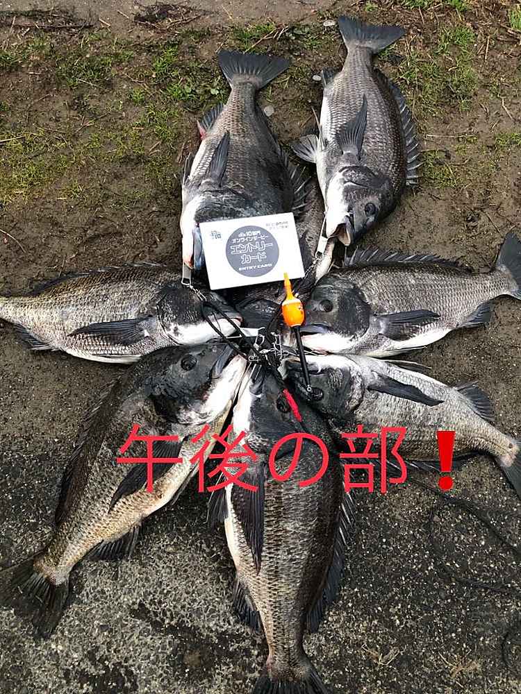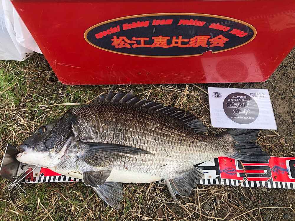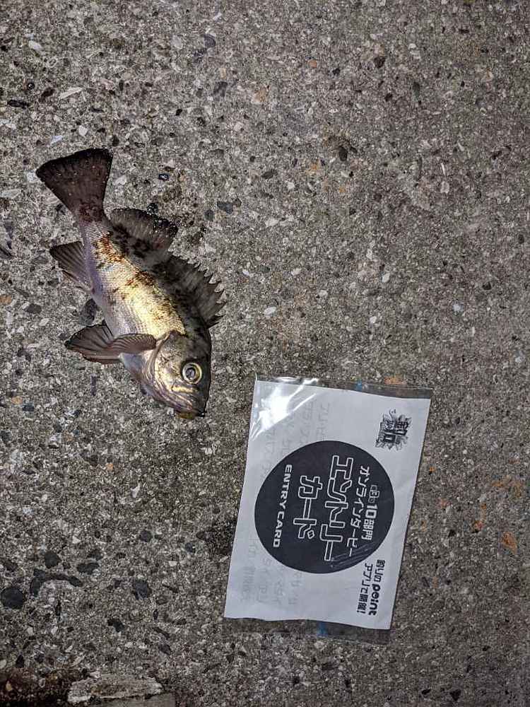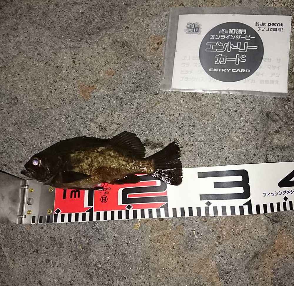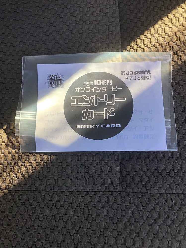 ②期間中での釣果を証明するため、釣魚単体とエントリーカードを合わせて撮影した写真
