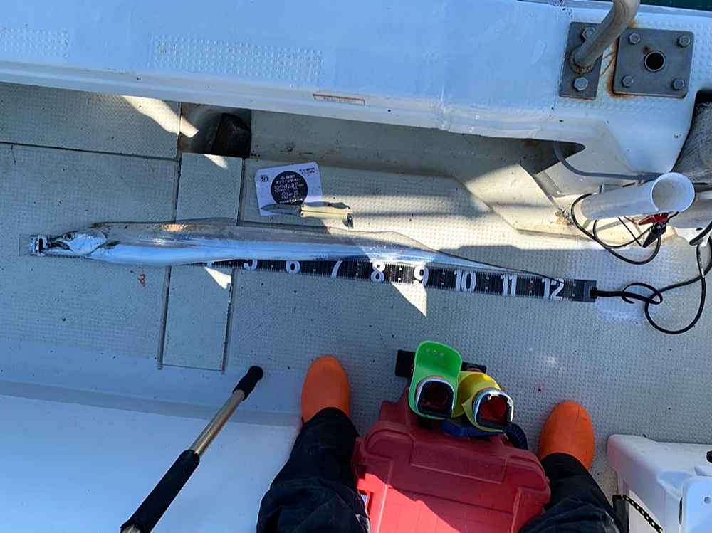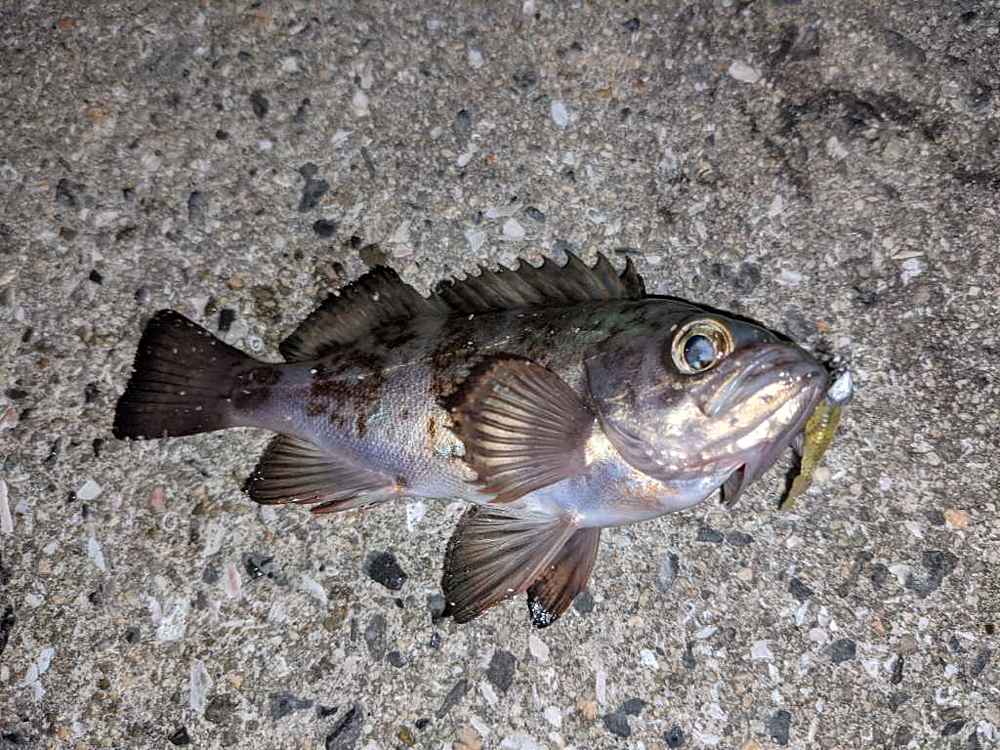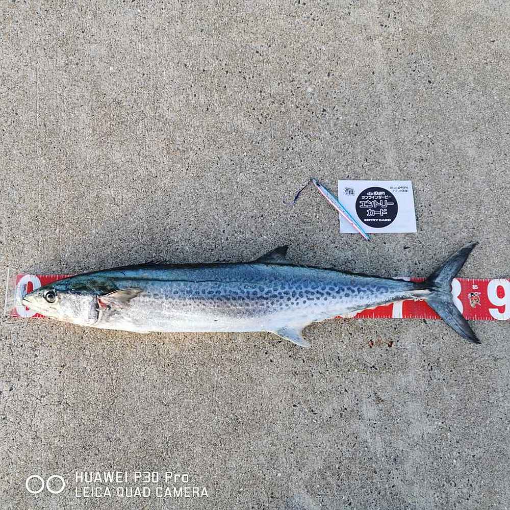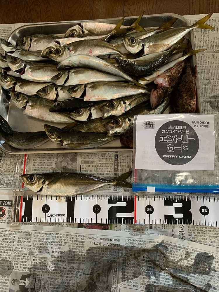 ②期間中での釣果を証明するため、釣魚単体とエントリーカードを合わせて撮影した写真