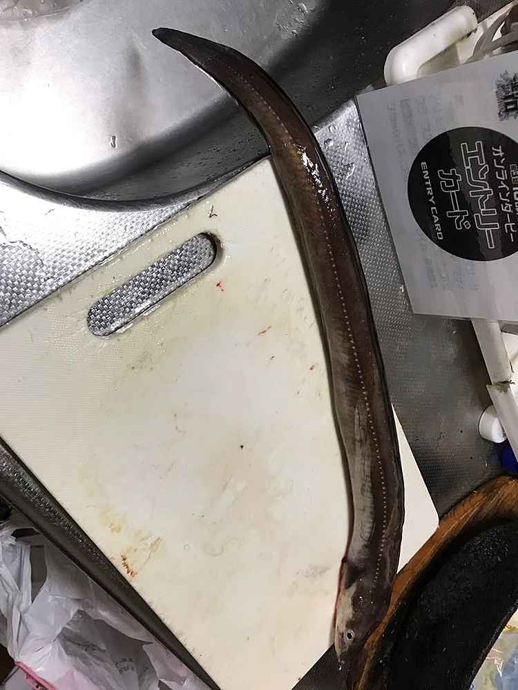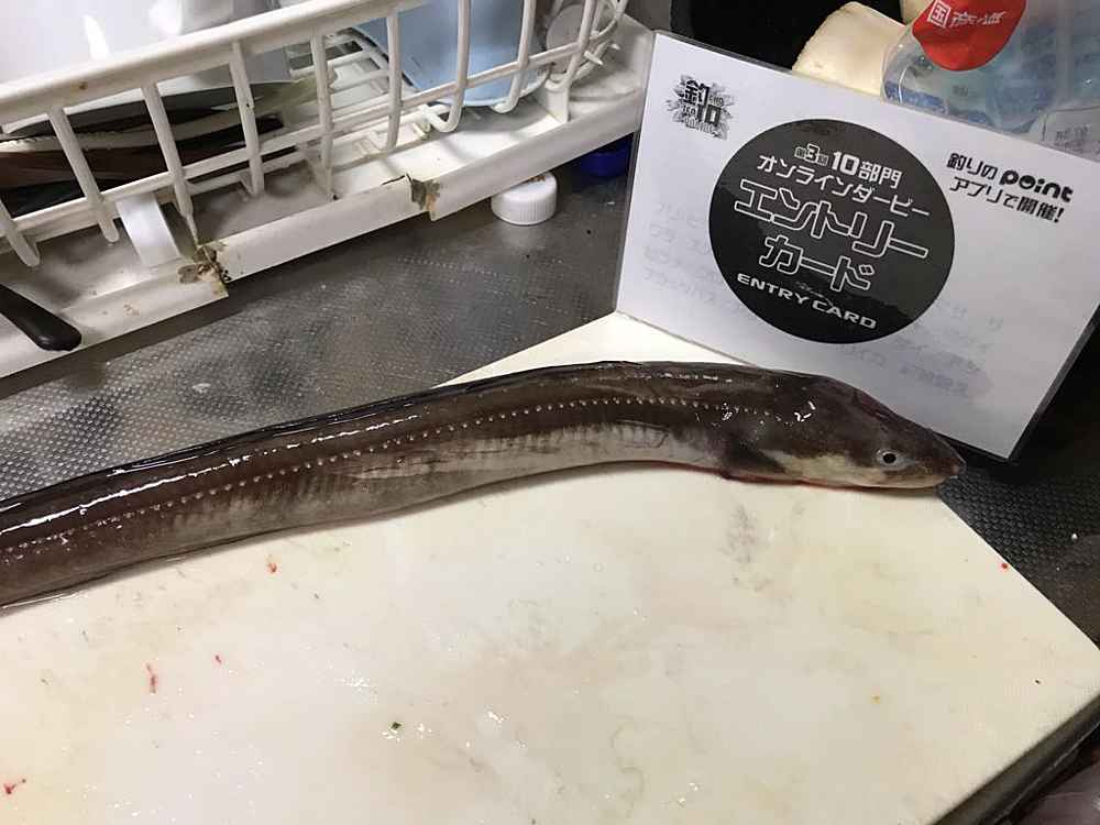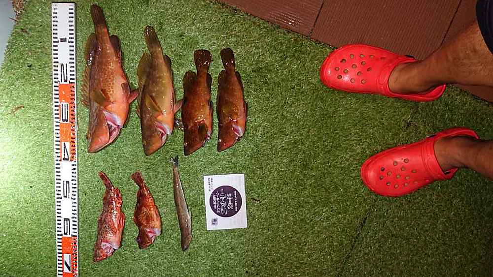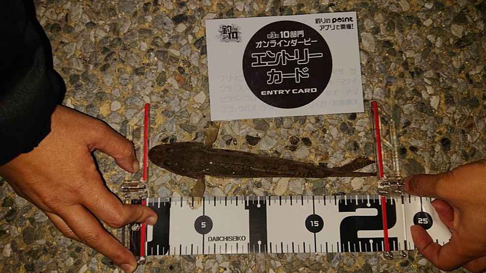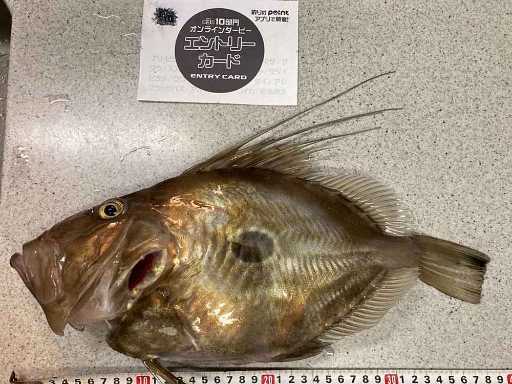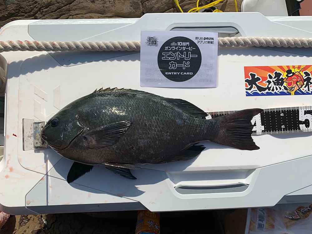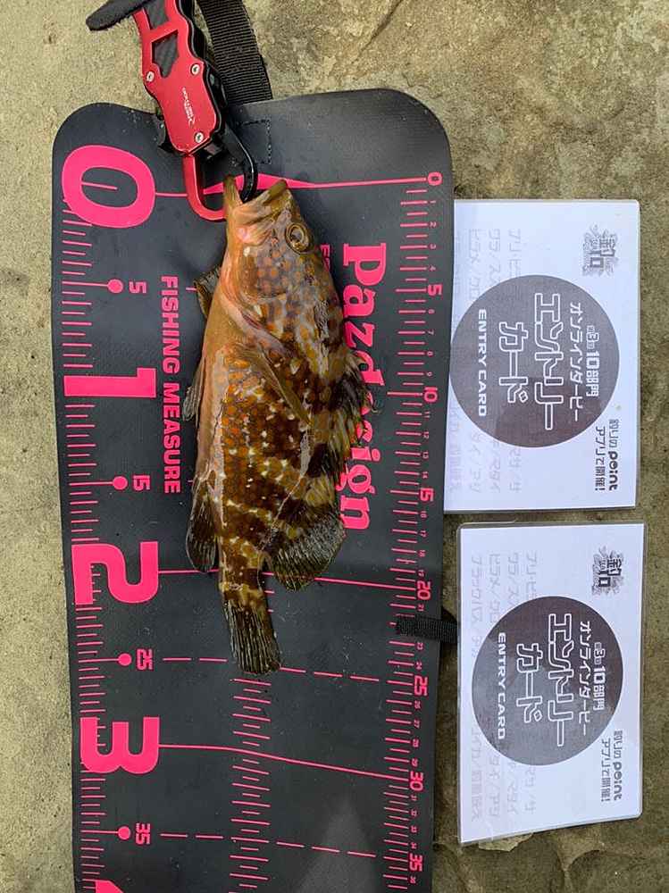 ②期間中での釣果を証明するため、釣魚単体とエントリーカードを合わせて撮影した写真