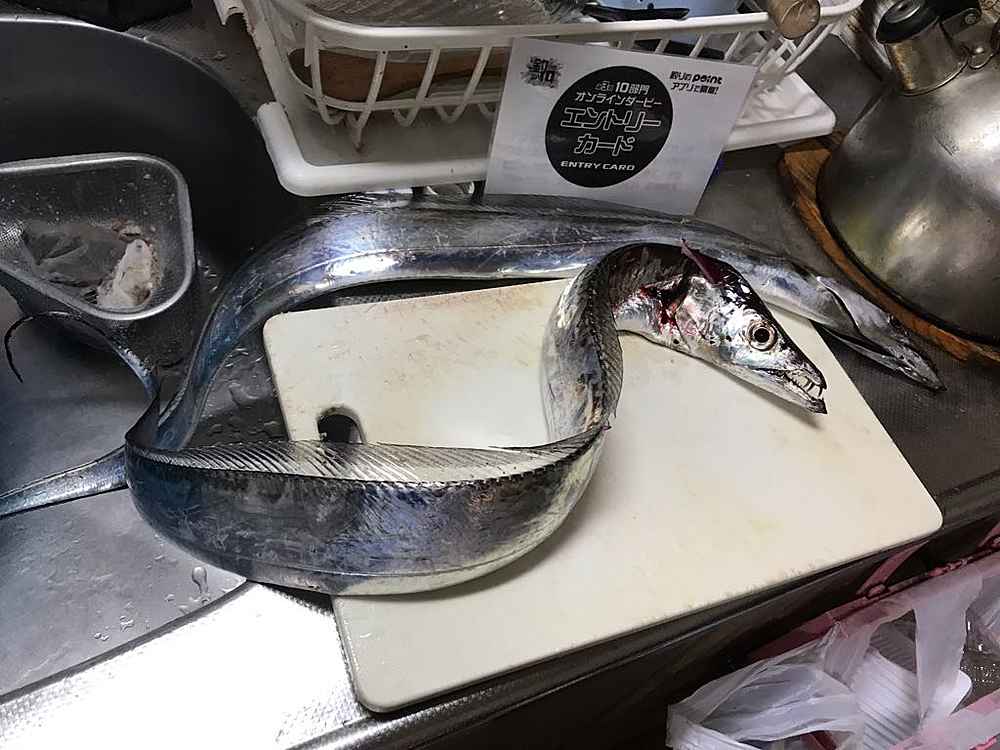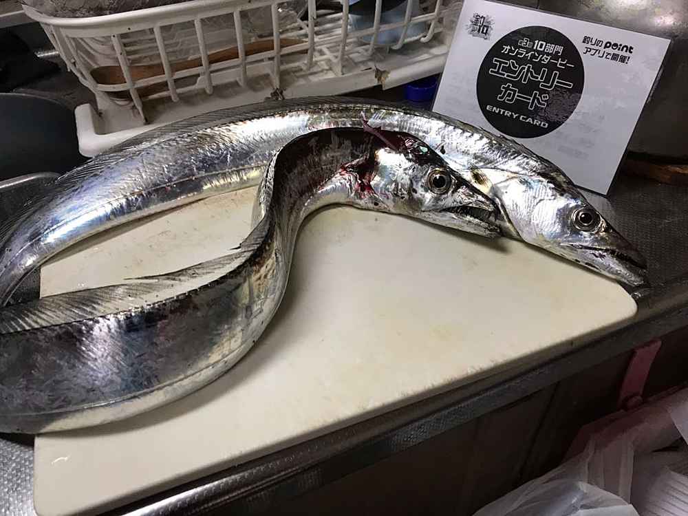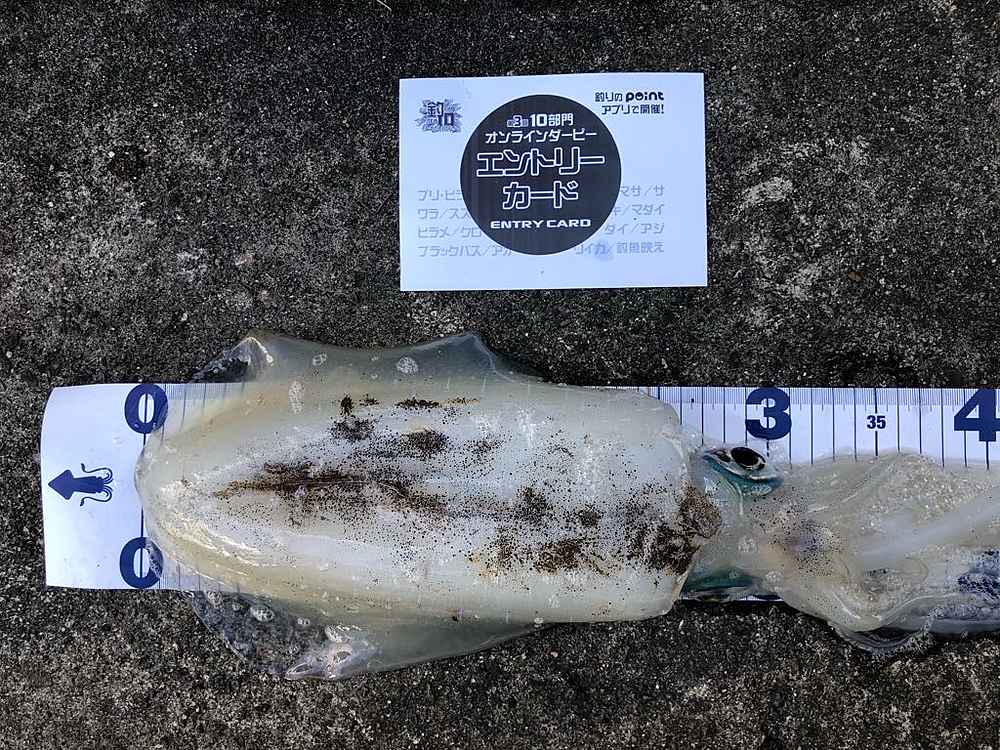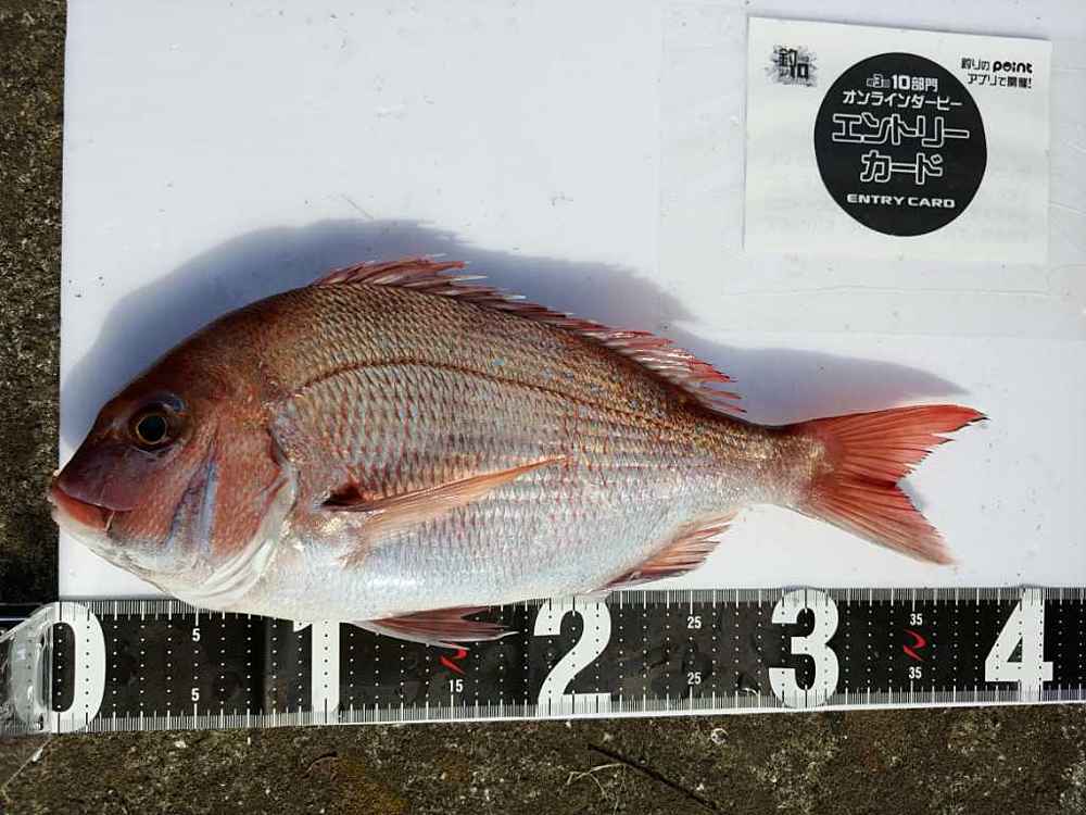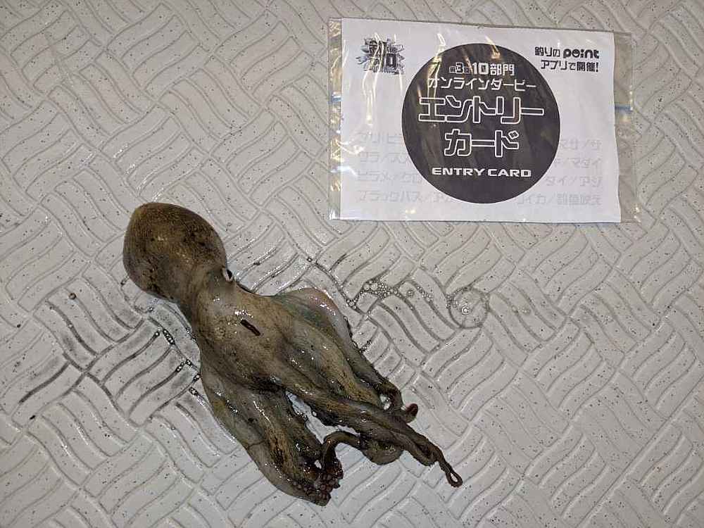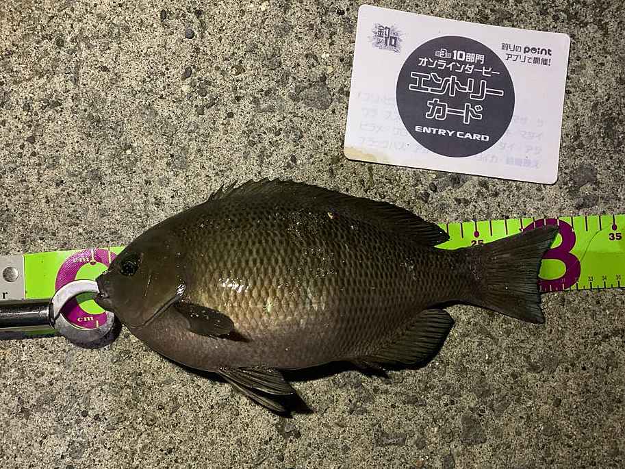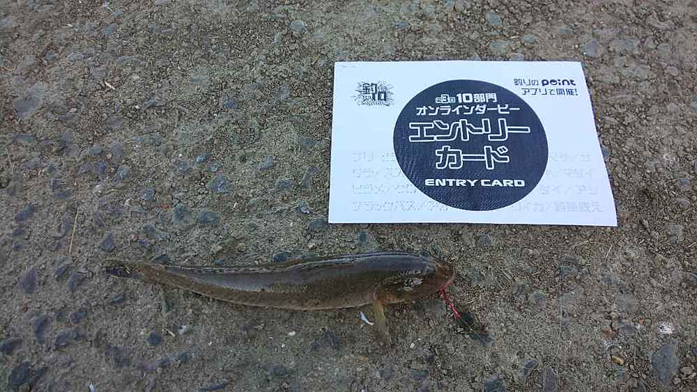 ②期間中での釣果を証明するため、釣魚単体とエントリーカードを合わせて撮影した写真