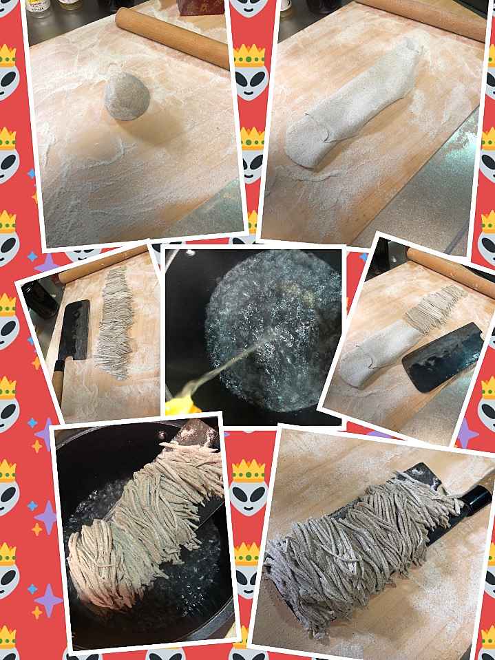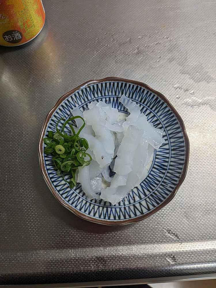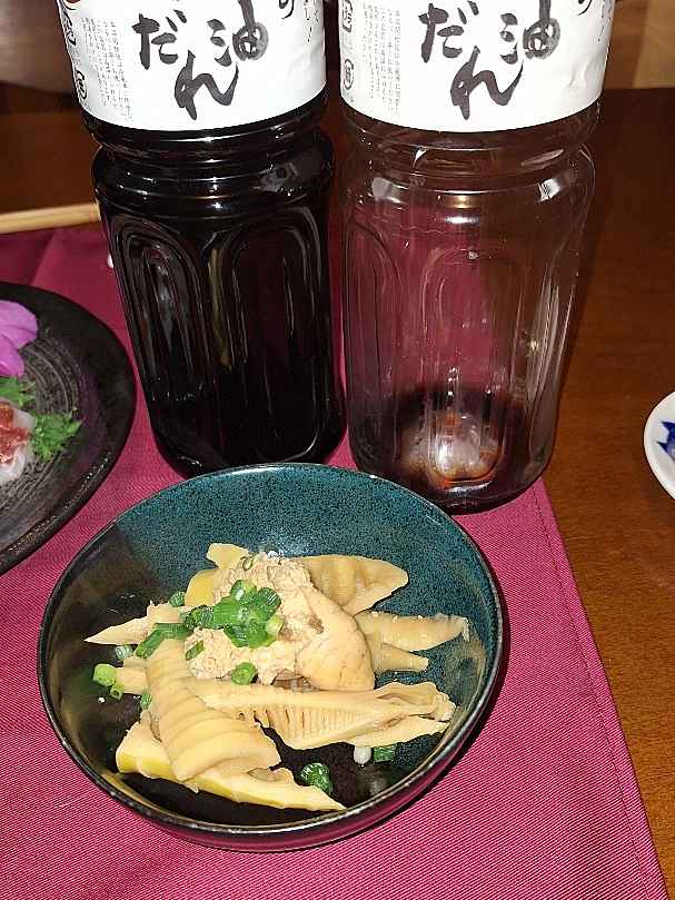 (1)料理(完成品)、(2)イカの笑油だれ