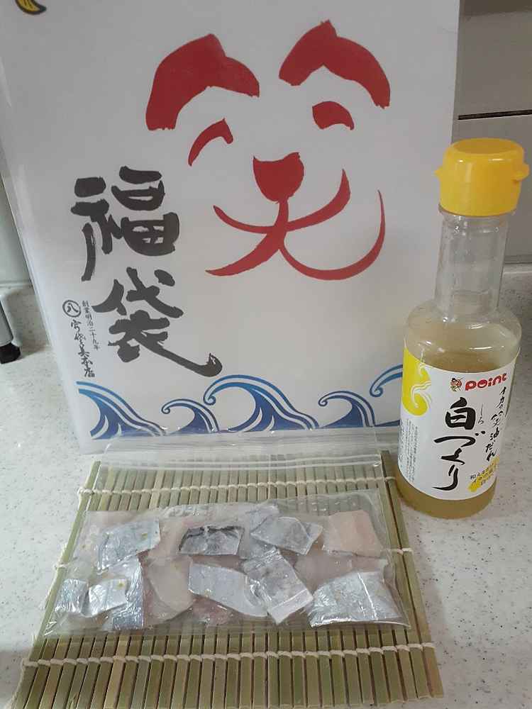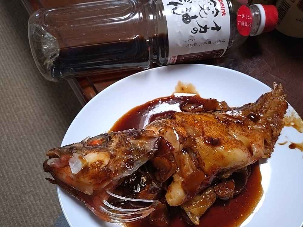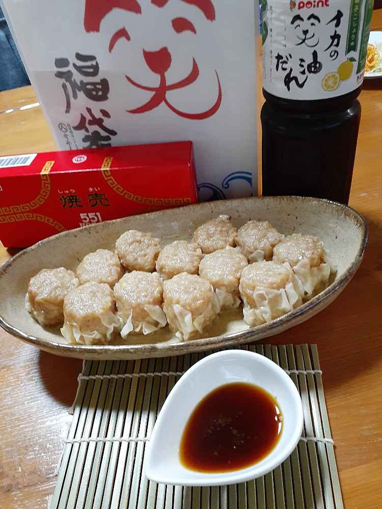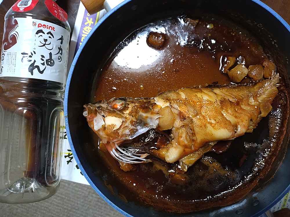 (1)料理(完成品)、(2)イカの笑油だれ