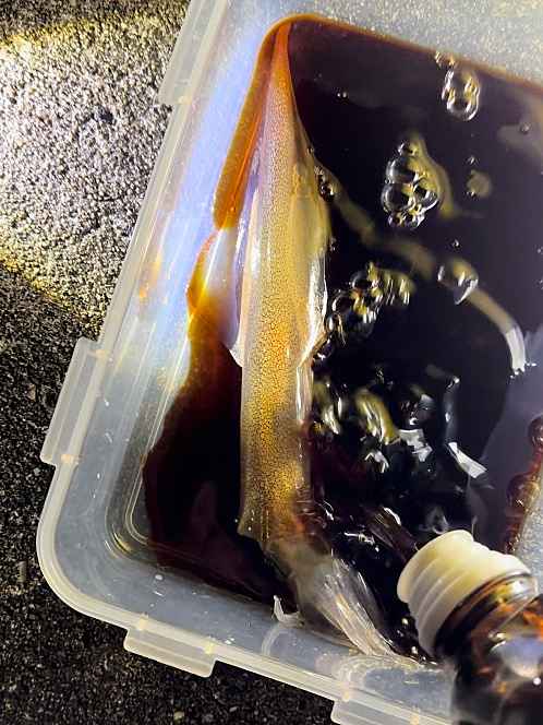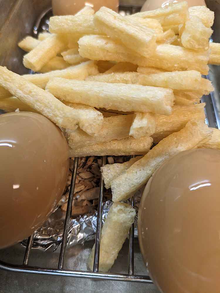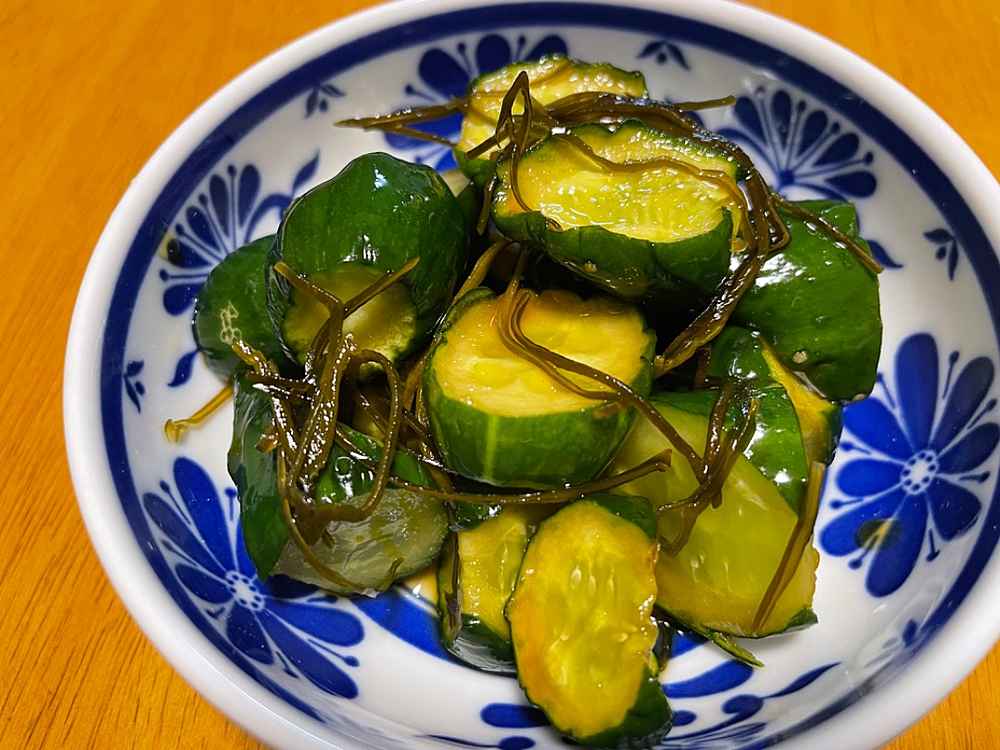 (1)料理(完成品)、(2)イカの笑油だれ
