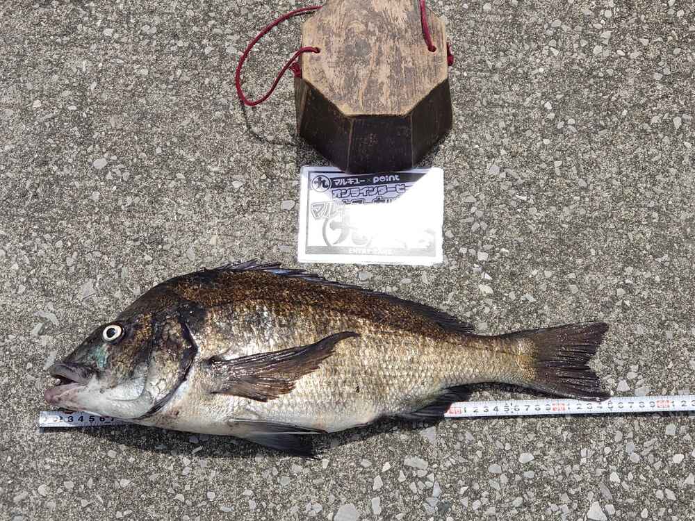 ・ 釣ったクロダイは目盛りの分かりやすいメジャーで計測し、一緒に撮影すること