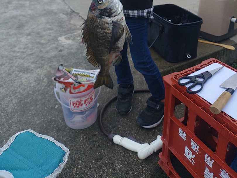 ・写真を撮る際は釣ったクロダイと